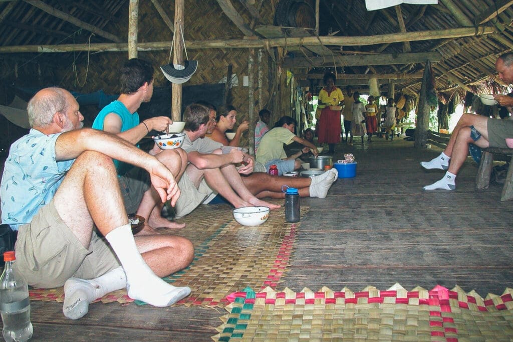 At a crossroads in the dusty ground, the music reaches our ears. Just past the cozy gathering of houses and huts, yet near enough to be noticed, stands the small cement church in the village, much like a new child at school waiting for an invitation to play wit…